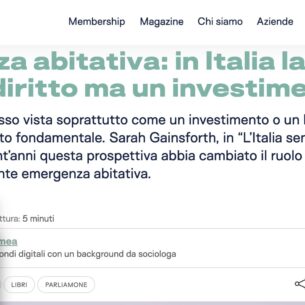 Alcuni anni fa, mentre aspettavo un treno alla stazione di Genova, ho ascoltato alla radio un giovane e noto filosofo italiano dire che «in futuro cambieremo case come cambieremo vestiti». Ho strabuzzato gli occhi. Sostanzialmente, infatti, il nostro stava dicendo che l’accesso alla casa non sarà più un problema, e che della proprietà non ce ne importerà un fico secco. Fantastico, ho pensato.