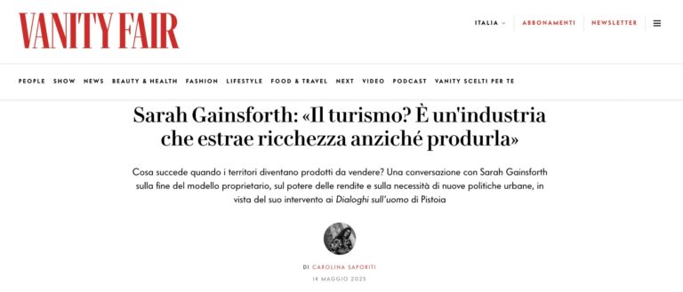 Cosa succede quando i territori diventano prodotti da vendere? Una conversazione con Sarah Gainsforth sulla fine del modello proprietario, sul potere delle rendite e sulla necessità di nuove politiche urbane, in vista del suo intervento ai Dialoghi sull’uomo di Pistoia