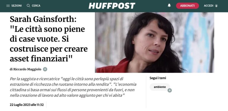 Per la saggista e ricercatrice “oggi le città sono perlopiù spazi di estrazione di ricchezza che ruotano intorno alla rendita”. “L’economia cittadina si basa ormai sui flussi di persone provenienti da fuori, e non nella creazione di lavoro ad alto valore aggiunto per chi vi abita”
