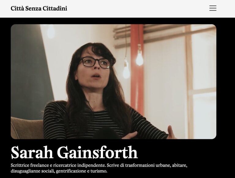 Insieme a esperti e attivisti ho contribuito a raccontare gli effetti dell’industria turistica nelle città italiane per il documentario Città senza cittadini, di Ivan Rulyov, un’indagine sul fenomeno della dysneyficazione, ovvero la trasformazione delle città storiche in grandi parchi giochi per turisti.