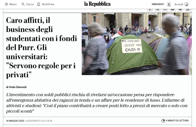 Se il diritto allo studio è un pretesto: il Pnrr ha finanziato alloggi già esistenti e in studentati privati. Ne ho parlato con Viola Giannoli per Repubblica.