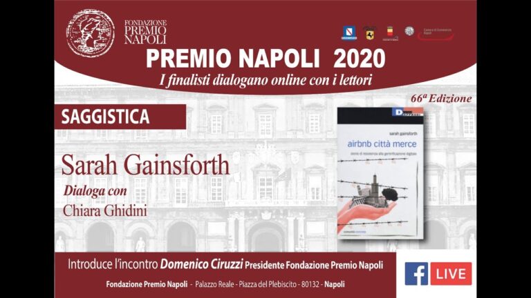 Incontro con Sarah Gainsforth, finalista della sezione saggistica Premio Napoli 2020 – 66esima edizione, dialoga con Chiara Ghidini.Evento introdotto da Domenico Ciruzzi, presidente Fondazione Premio Napoli. Regia a cura di Francesco Morra