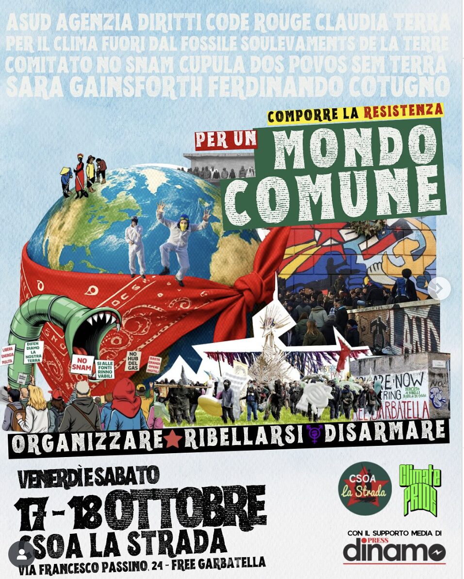 Csoa La Strada Via Francesco Passino 24, RomaIl 17 ottobre sarò al festival “Comporre Resistenze per un mondo comune” al CSOA La Strada, due giorni di dibattiti, incontri e musica per organizzare la resistenza: contro i modelli estrattivisti e finanziari, contro chi devasta territori e comunità, per costruire un fronte ecologista e sociale capace di immaginare futuro. Da Roma alla COP30 di Belém, passando per…